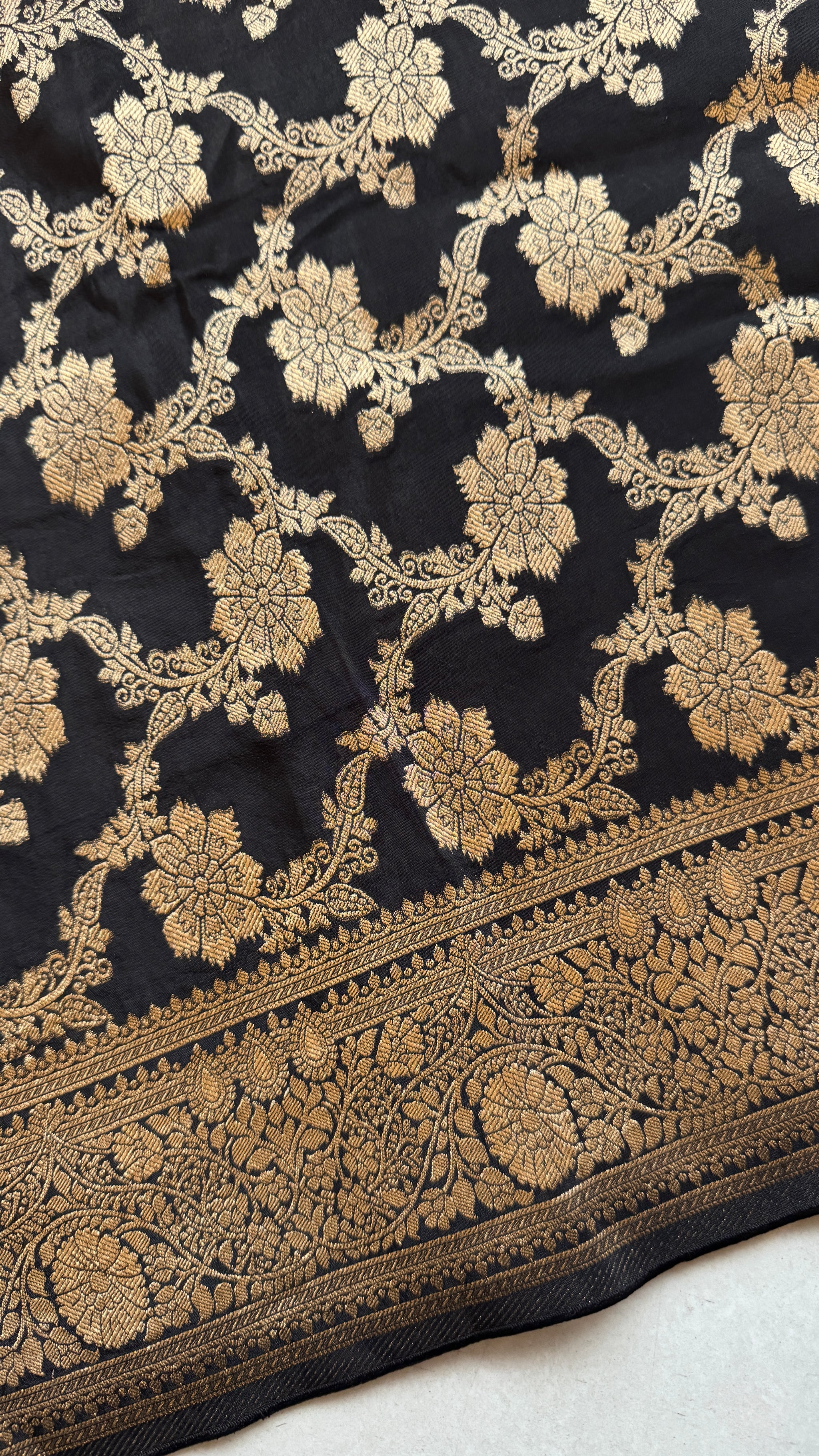 This corset top is crafted from black brocade fabric featuring border at hem. It is a structured corset top with minimal stretch. It features boning details and a back zipper.