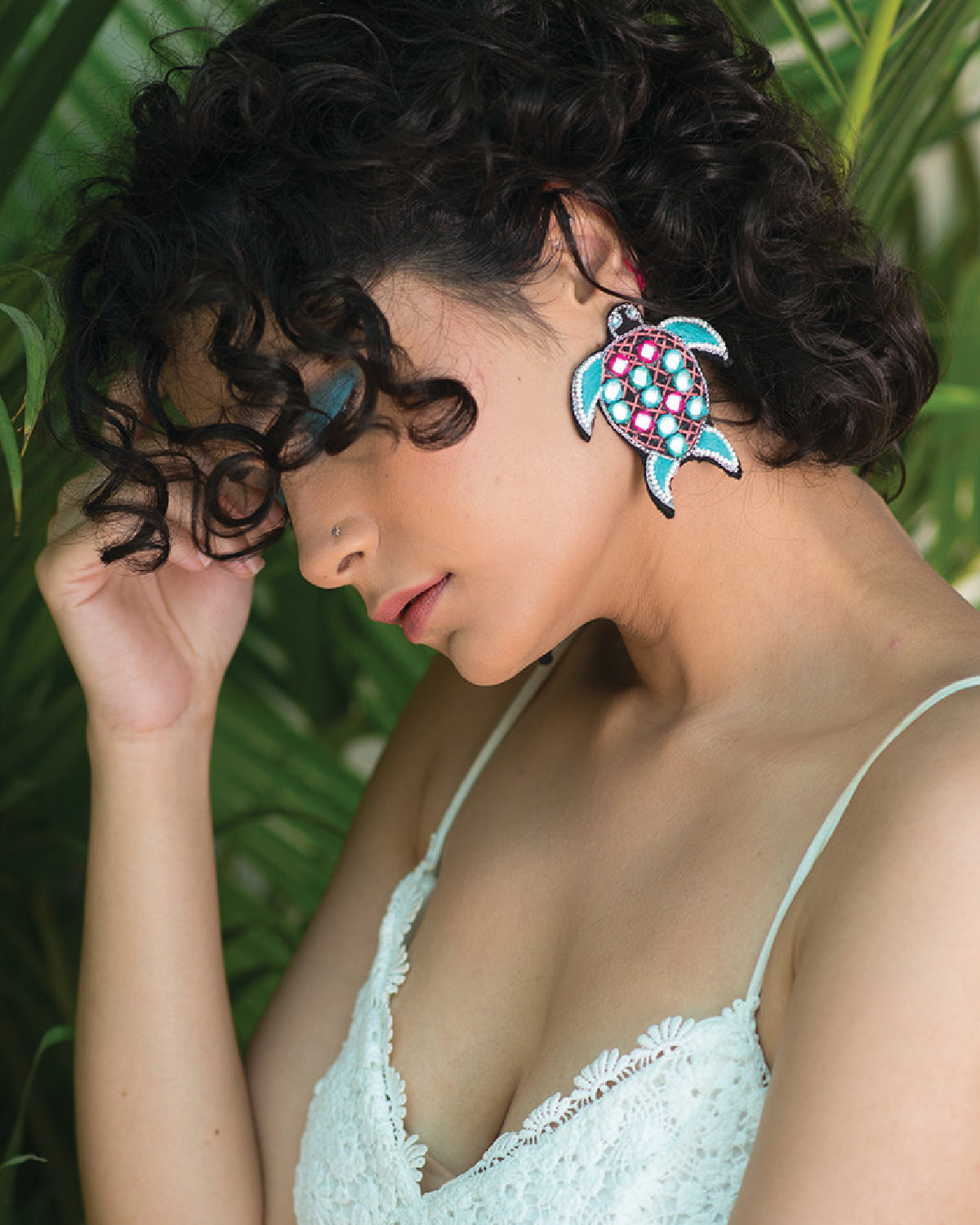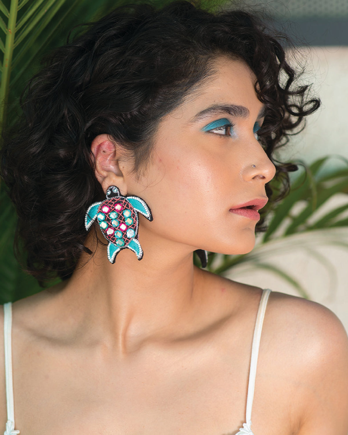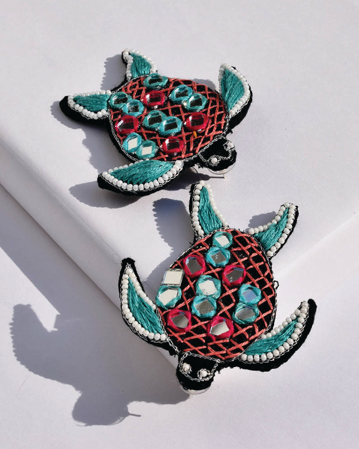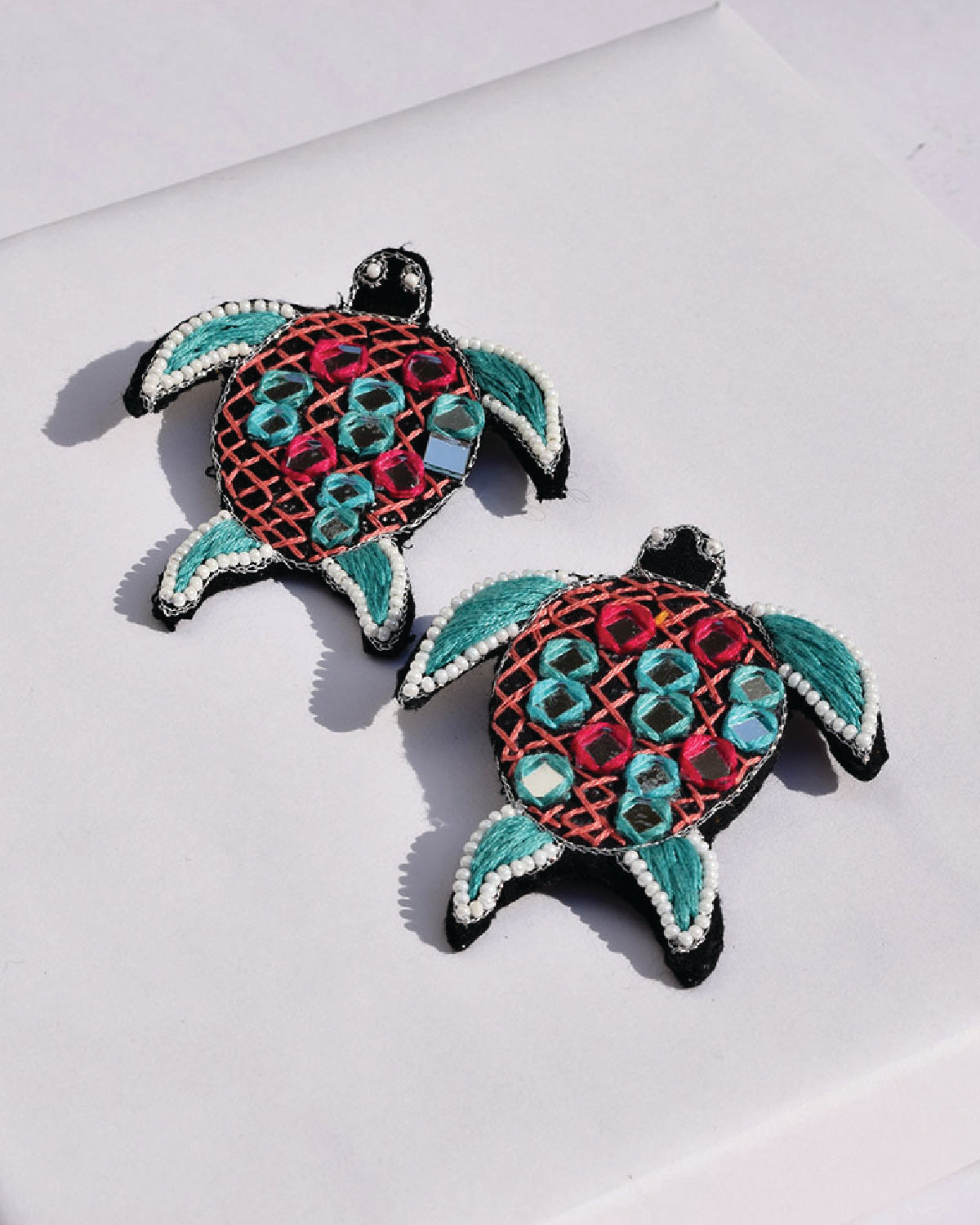 Let these small turtle mirror work stud detailed with white bead be a part of your vacation wardrobe this season that can take you from day to night in no time.