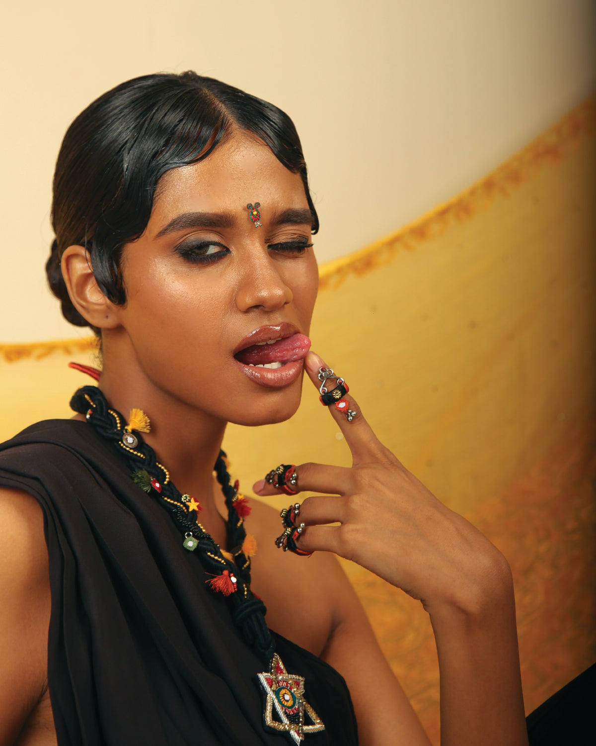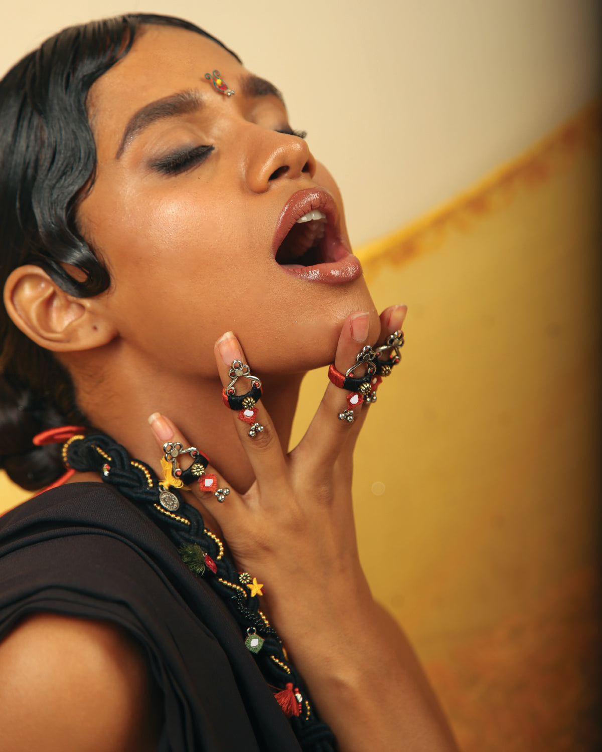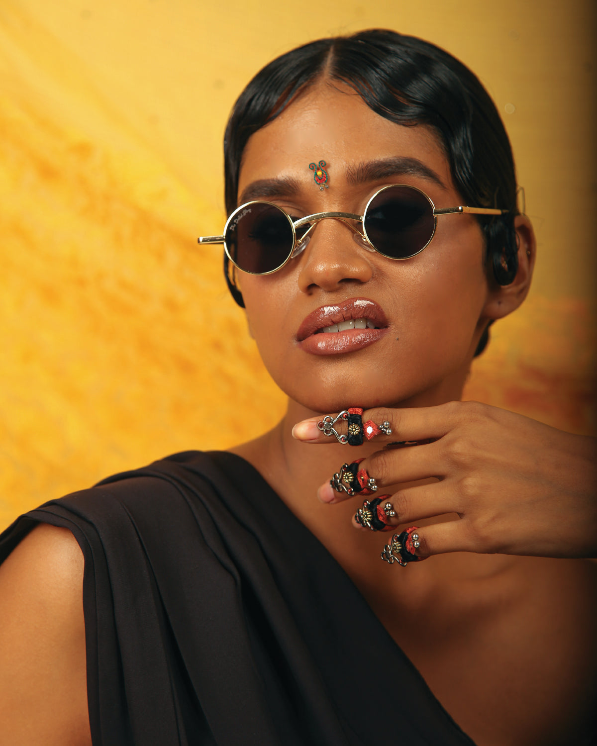 Set of 5 that comes with a adjustable free size ring base in silver.